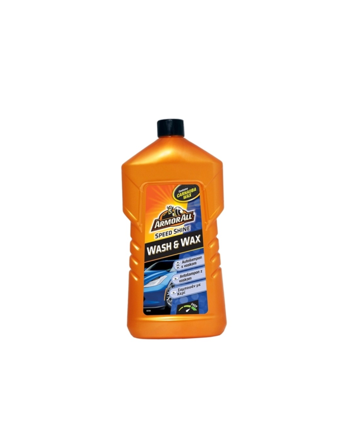 Σαμπουάν αυτοκινήτου που περιέχει κερί. Διπλή δράση: Καθαρίζει την επιφάνεια του αυτοκινήτου από βρωμιές και επικκαθίσεις, ενώ ταυτόχρονα προφέρει βαθύ γυάλισμα.